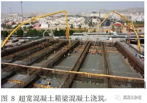沙特麥加-麥地那高速鐵路K2+854處采用超寬預應力混凝土箱梁橋,橋梁為多跨連續(xù)梁結(jié)構(gòu),該超寬箱梁采用單箱六室截面,最寬處達到67.3米。為了確保橋梁安全,對超寬箱梁自重作用下的應力分布分別采用梁單元和實體單元進行的分析,對超寬箱梁的剪力滯效應進行了分析,結(jié)果表明,正應力最大值和最小值相差15%左右,在設計時不可忽略。