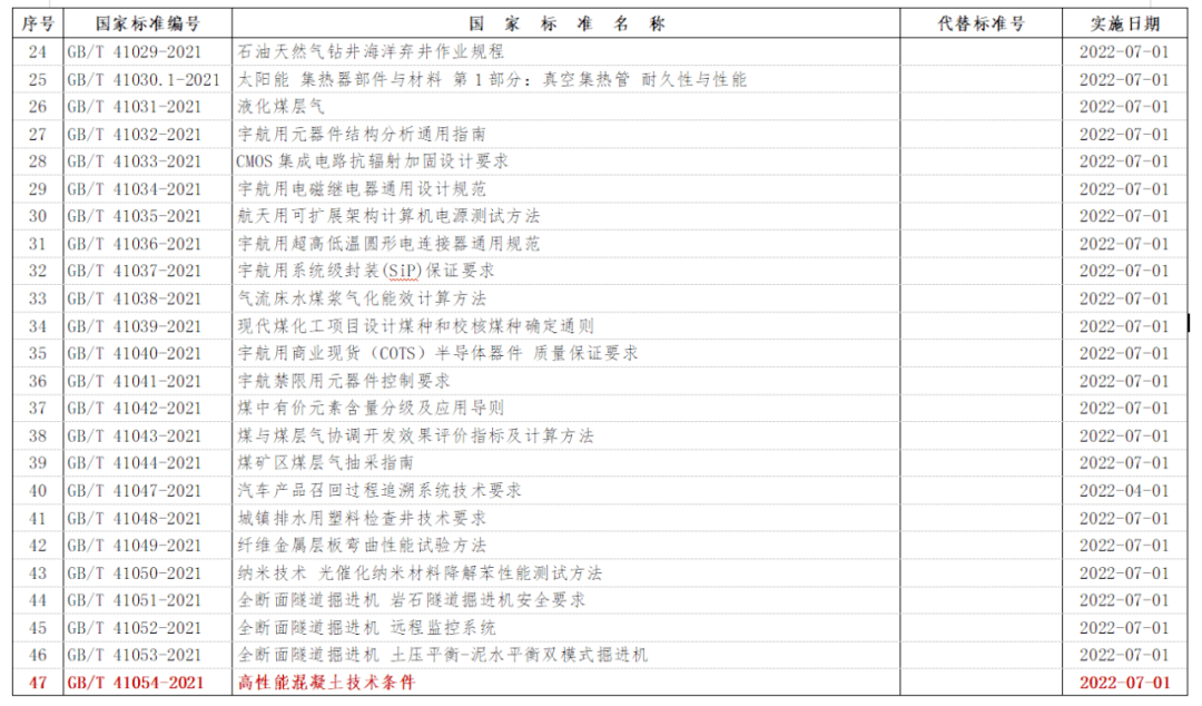 等530項(xiàng)推薦性國家標(biāo)準(zhǔn)和2項(xiàng)國家標(biāo)準(zhǔn)修改單的公告(2021年17號)》,由中國建筑科學(xué)研究院有限公司主編的國家標(biāo)準(zhǔn)《高性能混凝土技術(shù)條件》GB/T 41054-2021正式發(fā)布,并將于2022年7月1日實(shí)施。">